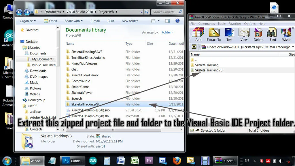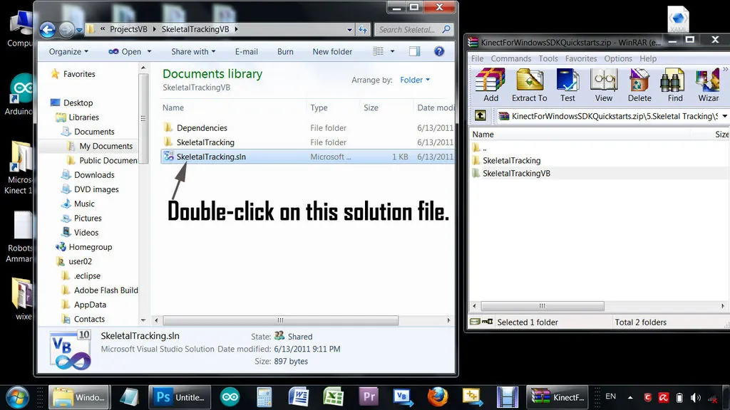 In this project, I use left and right hand movements which Kinect will use to control the rotation of two servos connected to Arduino Uno, which in turn moves the left and right arms of a makeshift stickman. I have written middleware in Visual Basic 2010 and it's based on the Microsoft Kinect SDK beta 2.