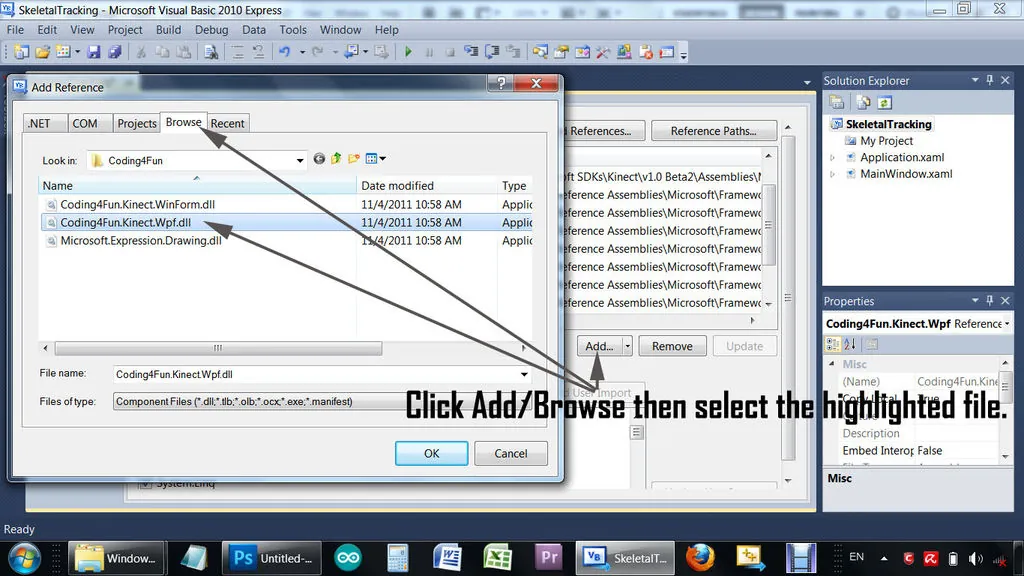 http://c4fkinect.codeplex.com/releases/view/76271#DownloadId=300233 - Microsoft Visual Basic Express 2010