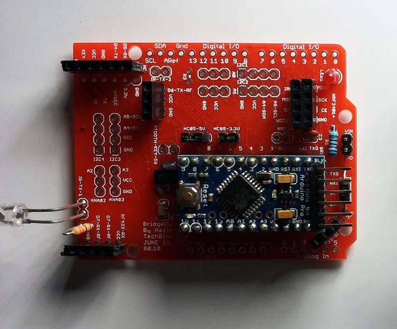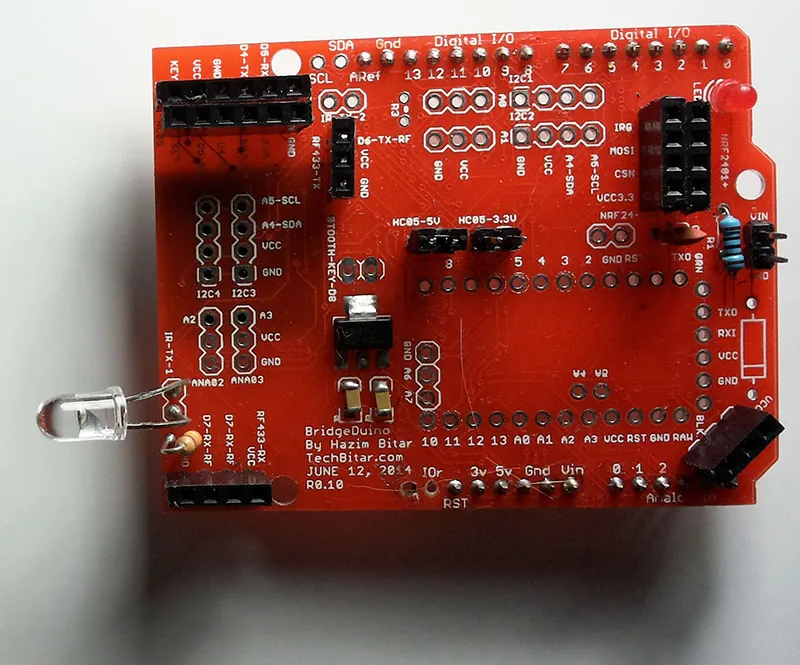 This is the 1st iteration of the PCB. I have done limited testing using two BridgeDuinos. The first was a shield paired with an Arduino Uno while the second with an Arduino Pro Mini 328/5V. Each wireless component worked with no visible issues. But as far as bridging from one wireless technology/module to another different one, I have done very little in this regard and the results were mixed for reasons I have outlined before. I also have not yet tested the BridgeDuino in low power configuration. In upcoming weeks, I will try some of the advanced configurations possible with the BridgeDuino.FEATURES
