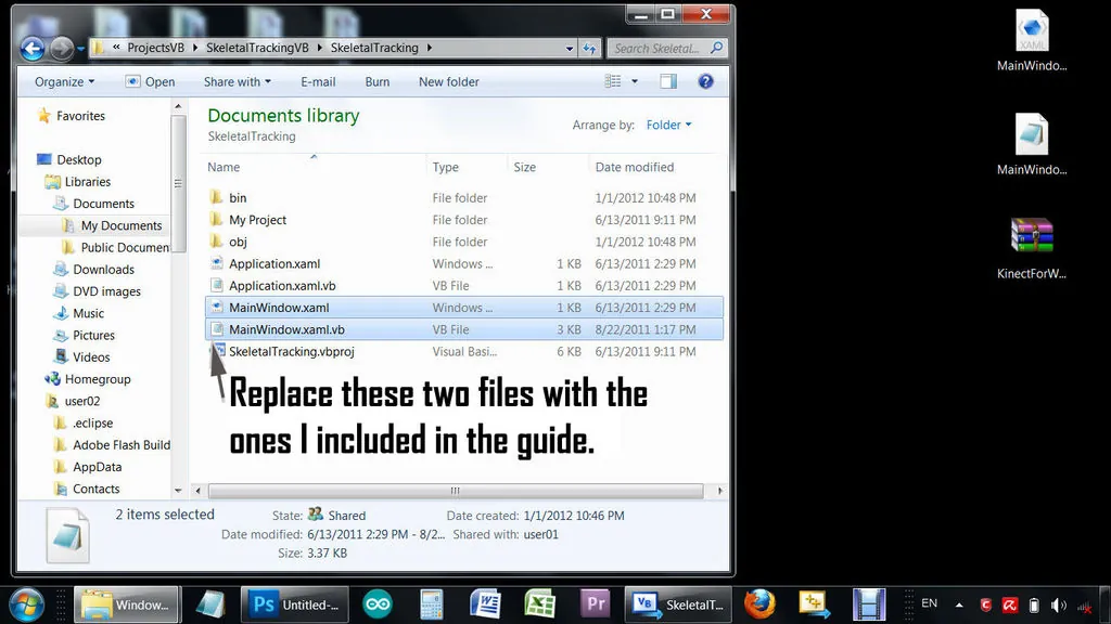 http://www.microsoft.com/download/en/details.aspx?displaylang=en&id=35 - Microsoft Kinect Code4Fun Quickstart VB code (You will overwrite this with my
