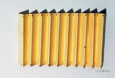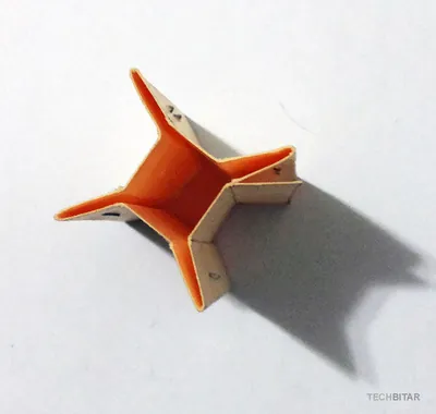 I cut a 20 cm X 5 cm piece of cardboard then folded each 1 cm section over the next 1 cm section until I got an accordion shape. This is just to make the edges more flexible. Then I folded it into a 4-tip star with an open square inside for the center photoresistor. All the sections are 1 cm long. I stapled the folded sections but you can use glue if you prefer.