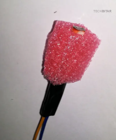 For the center photoresistor, I used a piece of anti-static foam but styrofoam or even a regular sponge would do fine. The point is to fix the photoresistor in the center cavity of the light tracking radar.