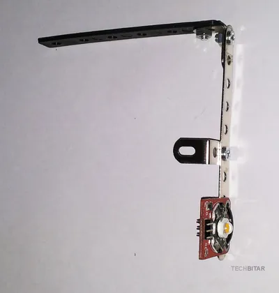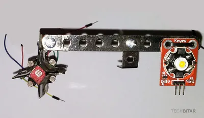 The Keyes 3W LED is a complete circuit with a power FET ready to be controlled from an Arduino. This simplified my LuxBlaster circuit. I used a wire tie to fix the LED module on one end of a construction set frame.