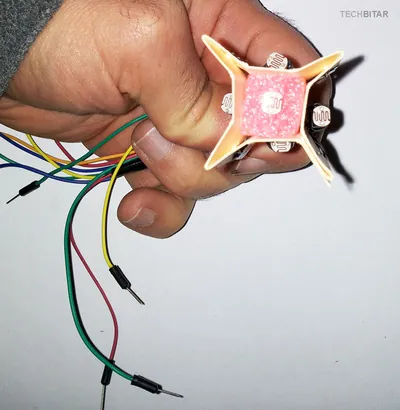 The photoresistors have long pins so I cut them all down to 1 cm in length. Then I used 2 female-male jumper wires to wire each photoresistors. You can use glue to ensure the connection is solid.